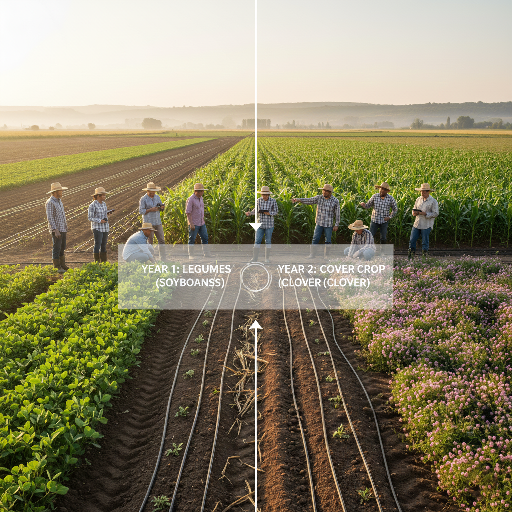 - Four-Year Rotation: Grains → Legumes → Root Crops → Fodder or Green Manure.